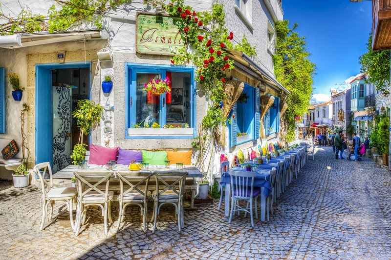 Alaçati, que é considerado um dos locais paradisíacos e românticos, é um dos segredos mais bem guardados à beira-mar da Turquia. Com suas casas tradicionais emolduradas em tons de roxo e rosa, com ruas de paralelepípedos e hotéis de luxo que capturam o espírito de sua herança, a cidade está em ascensão. As atrações locais populares incluem a vida noturna local, centros de surf de primeira classe, belas baías e praias abundantes, com uma brisa constante tornou-o um destino de visita obrigatória para os praticantes de windsurfe, ideal até mesmo para iniciantes do esporte.
