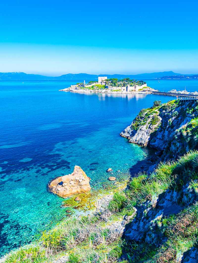 Dominando o golfo homônimo na costa do mar Egeu, Kuşadası é um dos destinos turísticos mais populares da Turquia, tudo graças ao seu mar límpido, bela natureza, amplo porto e proximidade com as cidades antigas, o local foi um dos primeiros destinos turísticos a mesquita Kaleiç, a Caverna de Zeus entre outros, e ainda continua a ser popular com suas belas praias, sol e brisa fresca. Também fica a poucos passos da famosa cidade antiga de Éfeso e seus sítios arqueológicos.