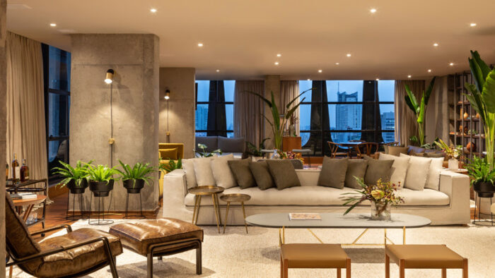 A maior suíte da América Latina celebra a contemporaneidade brasileira em cada detalhe, desde o mobiliário feito por nomes conhecidos do design nacional até a integração do urbano com a natureza tropical através do projeto do Estúdio Penha.