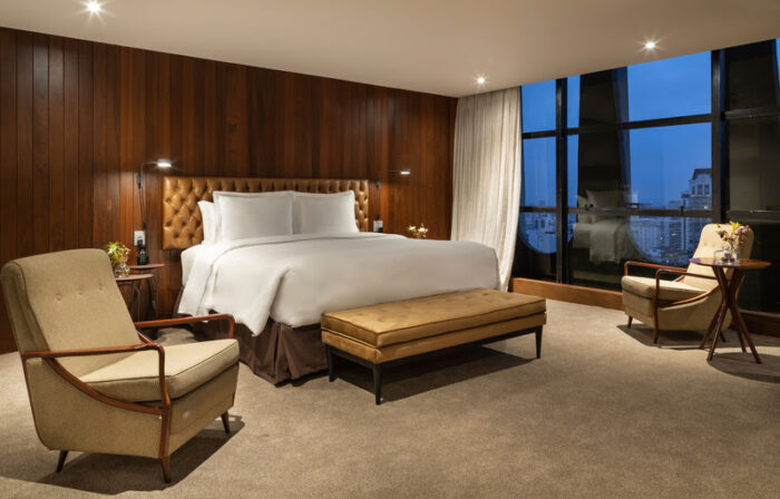 A suíte aposta em uma identidade genuinamente brasileira. Os tons terrosos e materiais naturais como linho, algodão e cerâmica criam um refúgio de sofisticação e calma na agitada capital paulista. Esta escolha não é apenas estética, mas também sustentável: parte do mobiliário foi desenvolvida a partir de madeira de demolição, reforçando o compromisso com práticas responsáveis.
