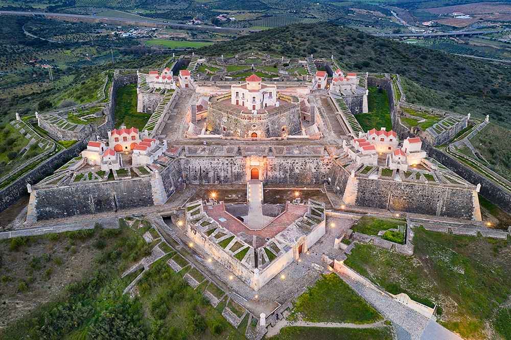 Início Atividades imperdíveis para fazer com crianças no Alentejo Elvas Fort drone aerial view of Forte Nossa Senhora da Graca in Portugal