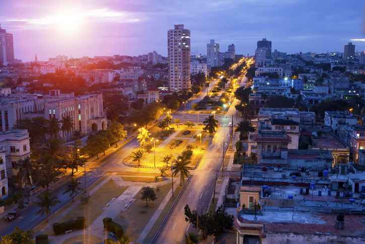 Cuba. Night Havana. The top view on avenue Presidents.