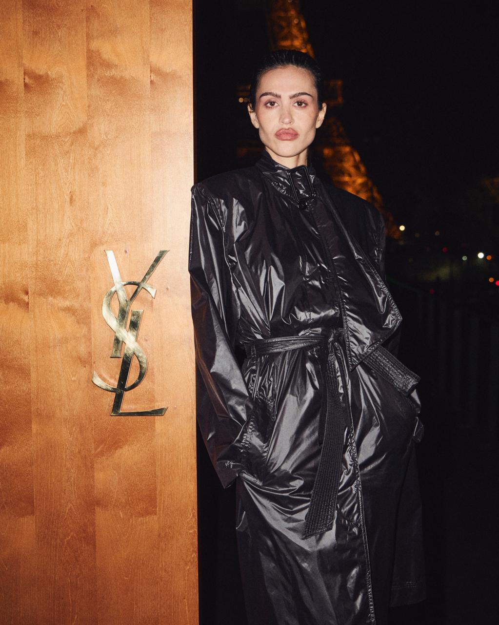 … A coleção traz referências culturais que vão do cinema dos anos 1970 à elegância da atriz Romy Schneider, traduzindo uma estética sofisticada, dramática e profundamente ligada à herança criativa de Yves Saint Laurent.